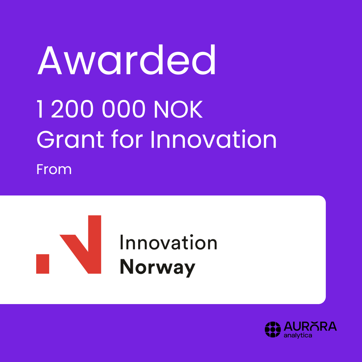 Aurora Analytica Awarded 1.2 Million NOK in Innovation Grants from Innovation Norway